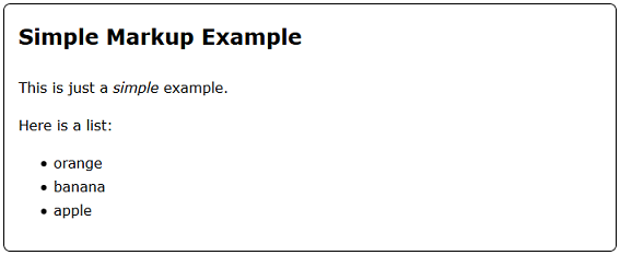 After the above text has been converted to HTML (by the markup processor), the result in the browser looks like this: